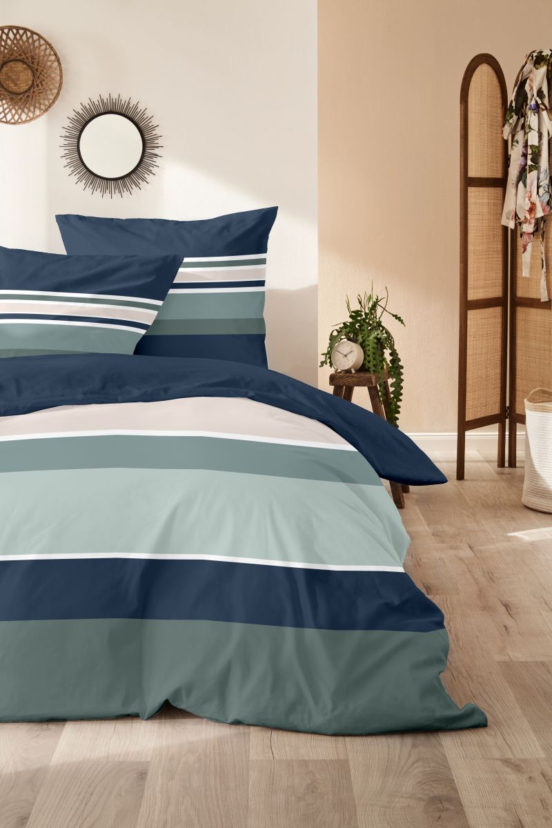Diese Bettwäsche in modernem Streifendekor ist aus 100 % Makosatin, welches sich angenehm weich und hochwertig auf der Haut anfühlt