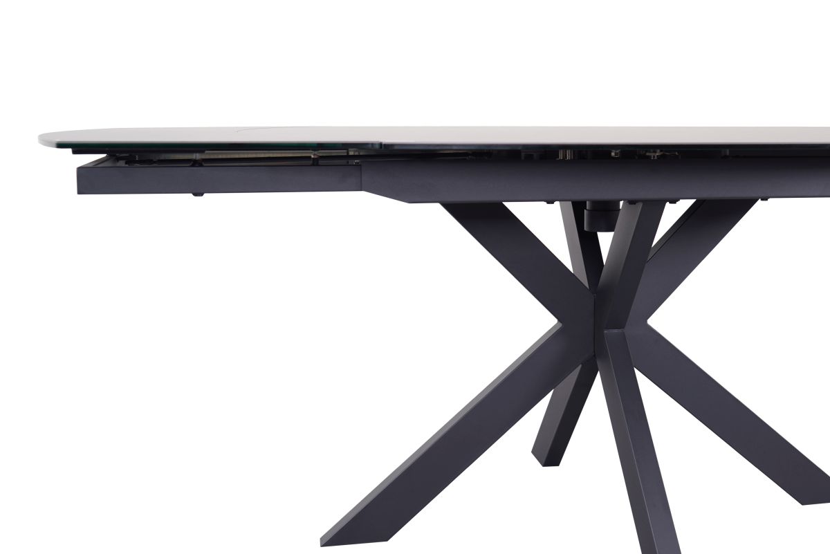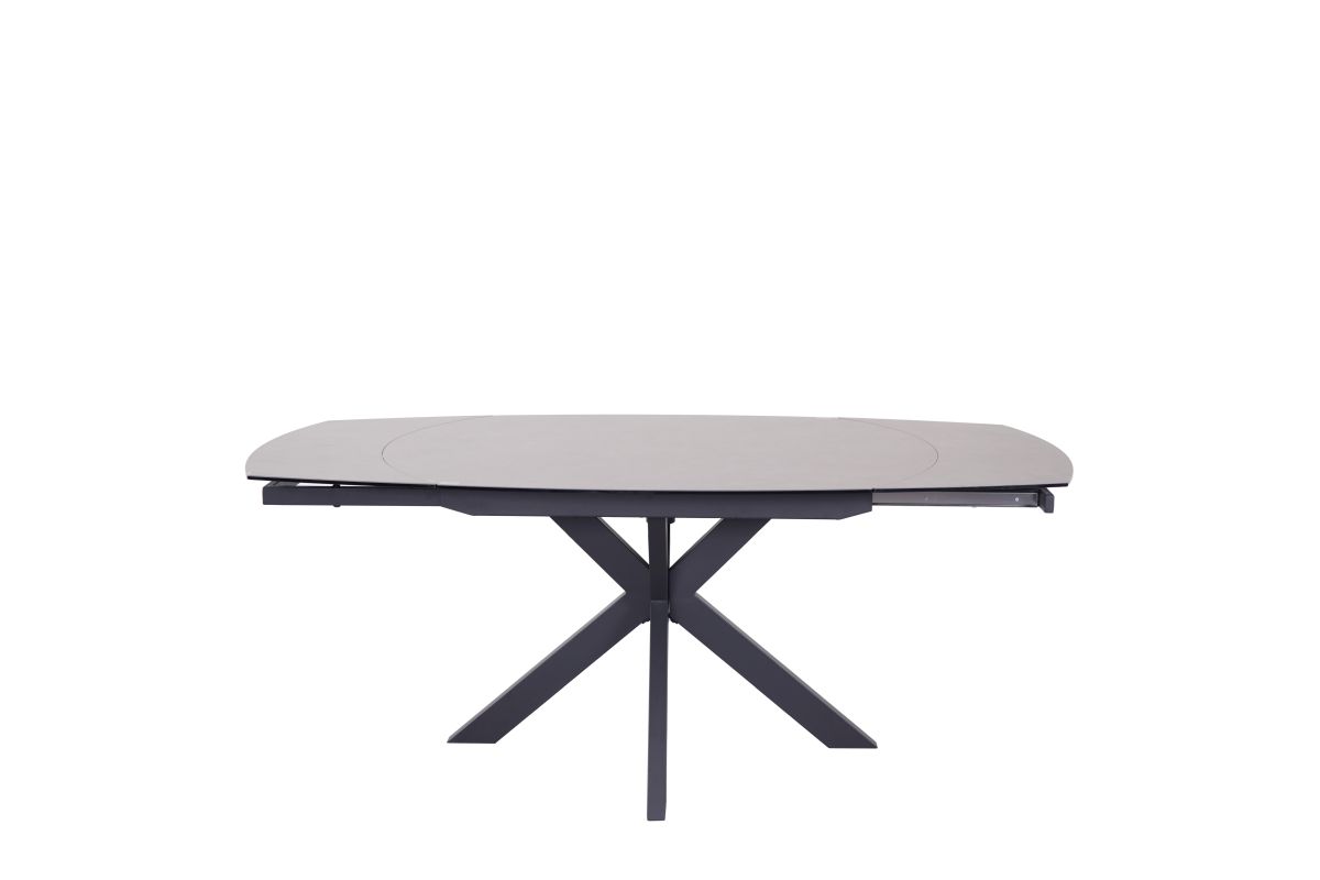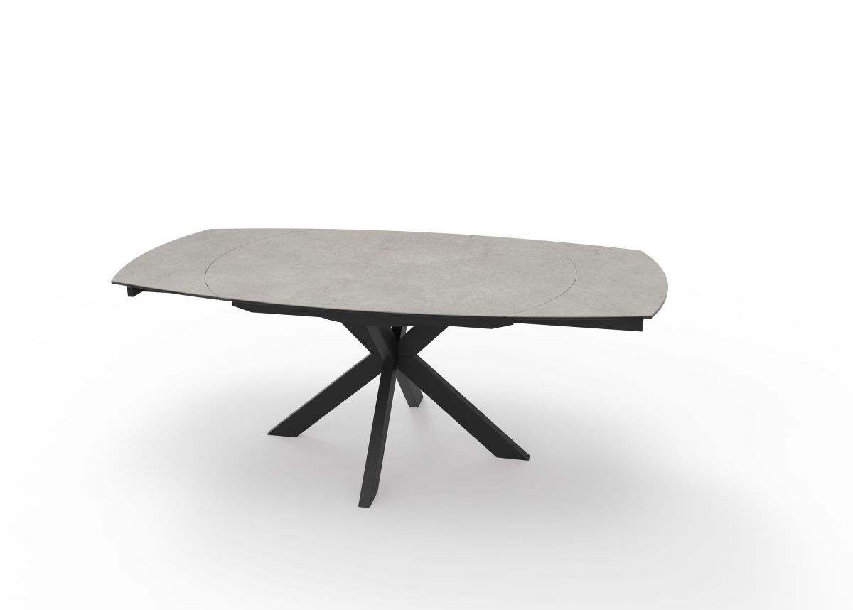 Platte Glaskeramik oval grau, Gestell sternförmig Metall schwarz,