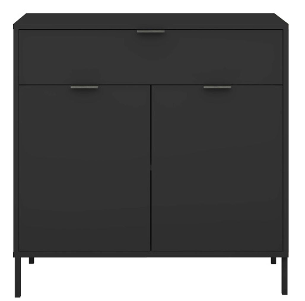 Front: 2 Türen und 1 Schubkasten mit kratzfester Melaminharzfolie, Dickkante,