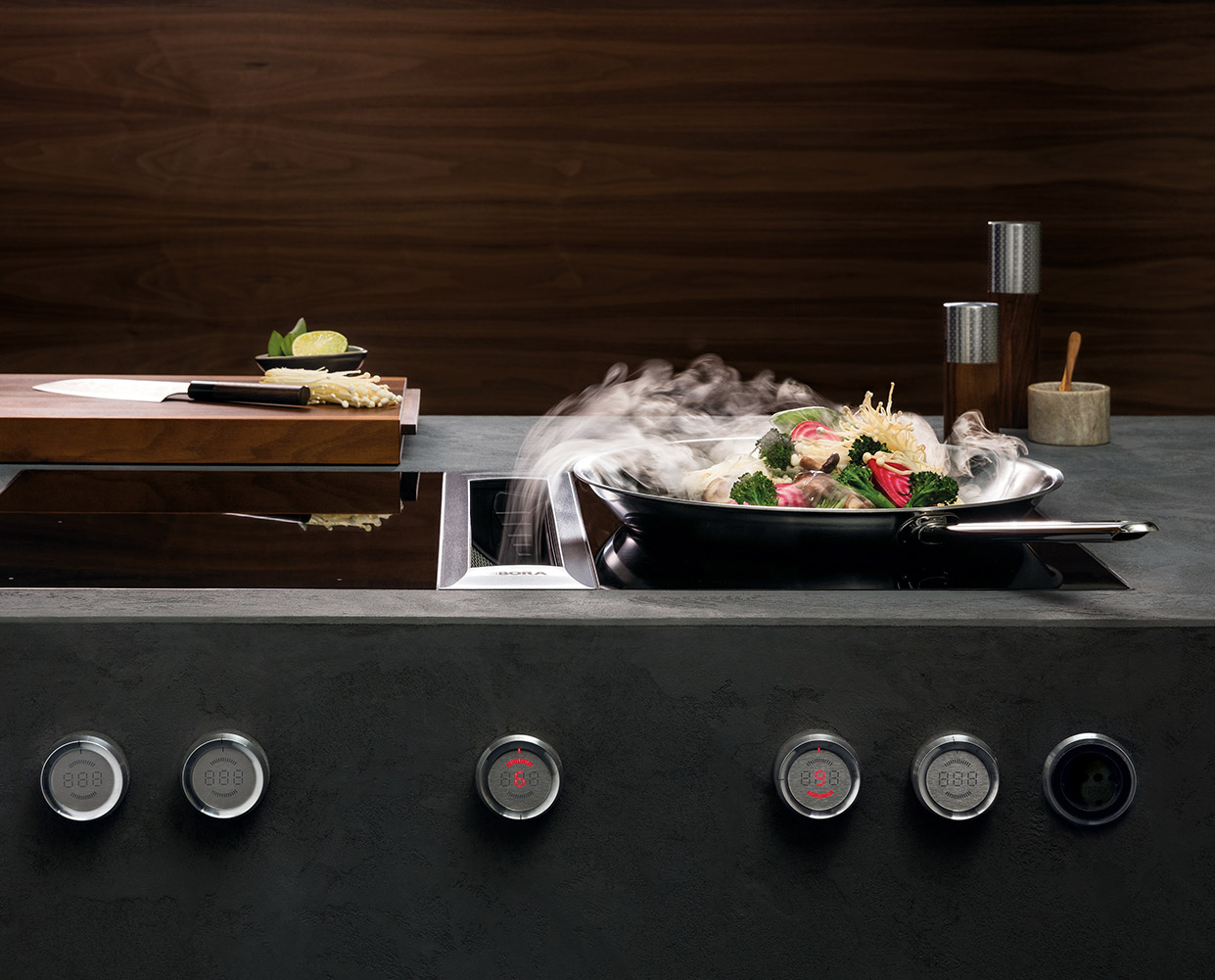 Mittlerweile sind allerdings Muldenlüfter zum Standard geworden. Bei diesen ist der Abzug mitten im Kochfeld und bietet dir daher nicht nur eine hervorragende Kopffreiheit beim Kochen, sondern auch eine hohe Effektivität. Hier bietet dir beispielsweise die Marke Bora ein tolles Kocherlebnis.