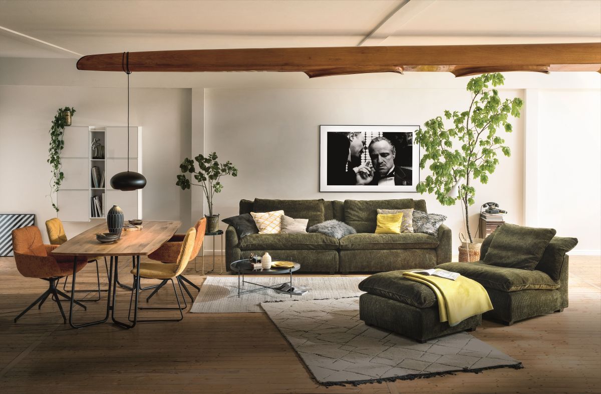 Tauche in die Welt des Urban-Lifestyles mit unserem Big Sofa im kultigen Cordbezug ein, das dein Wohnzimmer in eine moderne Wohlfühloase verwandelt. Der grüne Cordbezug vermittelt ein Gefühl von Gemütlichkeit und begeistert mit seiner angenehmen Hapt