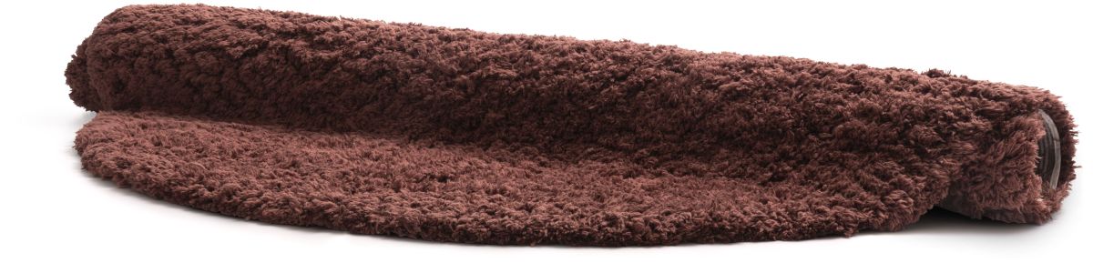 Dieser rotbraune Teppich hat einen Durchmesser von 250 cm und ist auch in zwei ebenso weichen Farben erhältlich: Nude und Creme. Dank der Zusammensetzung