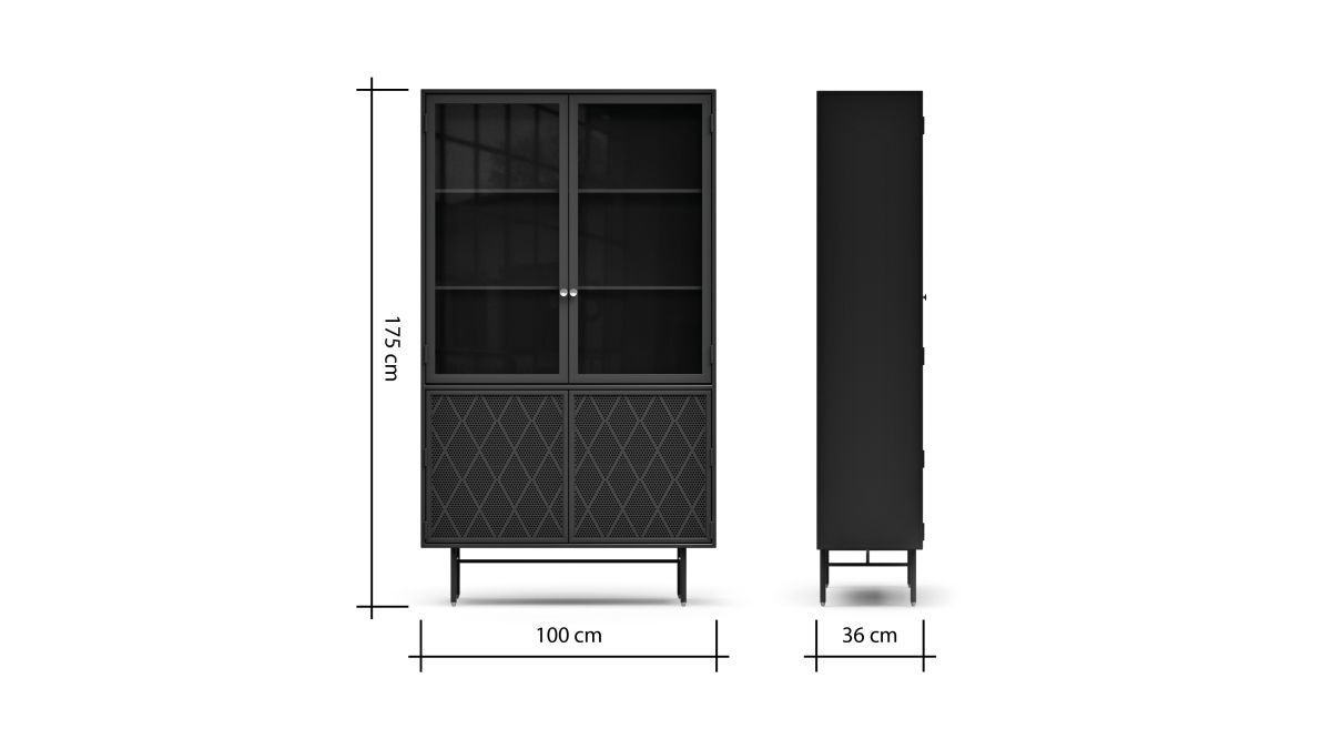 Mit dieser Vitrine aus schwarzem Metall bringst du industrielles Flair in dein Interieur und hast bestimmt Platz für viele schöne Dinge!