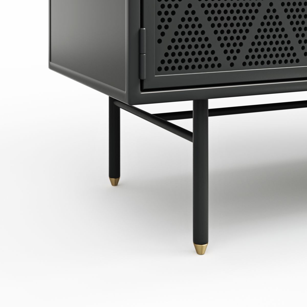 Gestell: Metall schwarz pulverbeschichtet mit bronzefarbigen Kappen
